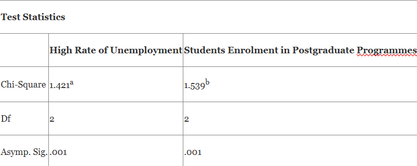 Table 4: High rate of unemployment among the youths and enrolment in postgraduate programmes